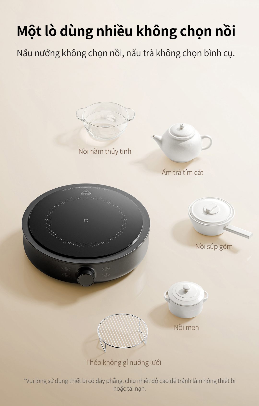 1. Không kén nồi - đa năng: Sử dụng được với mọi loại nồi: Chiên, xào, hầm, luộc, nướng đều dễ dàng
