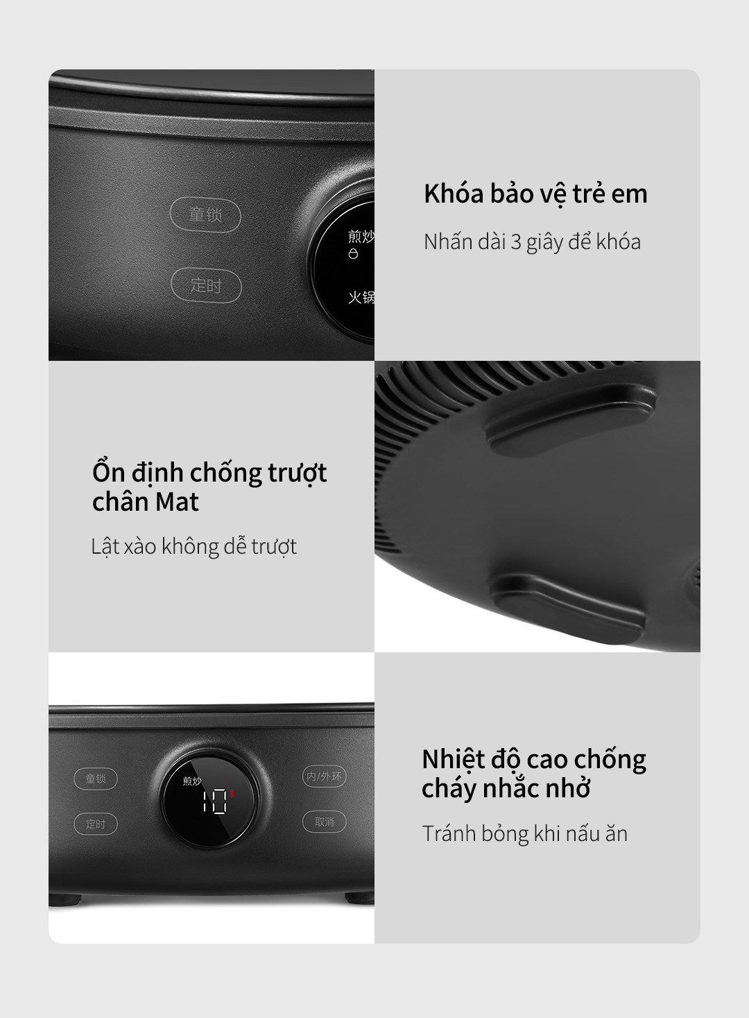 3. An toàn - vận hành êm ái: Không phát ra bức xạ + mặt kính gốm chống nổ + vận hành siêu êm